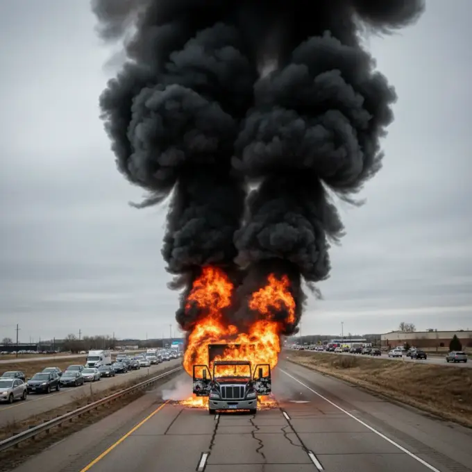 A truck fire on the A46 near Saint-Priest in the Lyon metropolitan area caused major traffic disruptions and queues stretching for nearly 10...