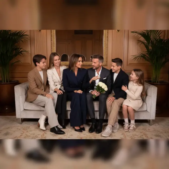 Victoria Beckham presented her new Autumn/Winter 2026-2027 collection at Paris Fashion Week, surrounded by her husband David Beckham and their children Cruz, Romeo,...